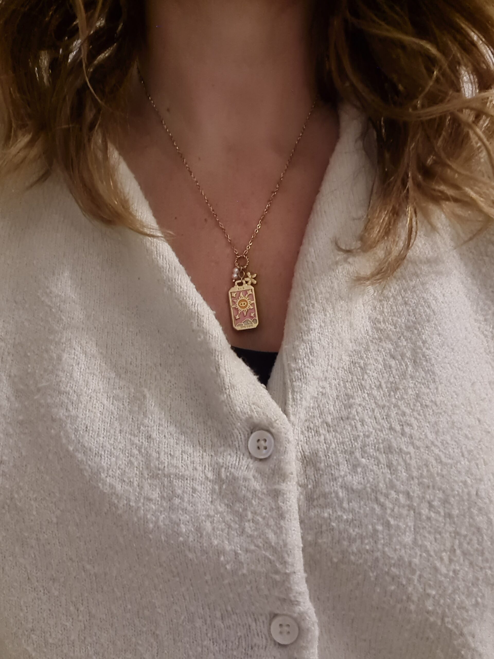 Lange ketting met roze hanger